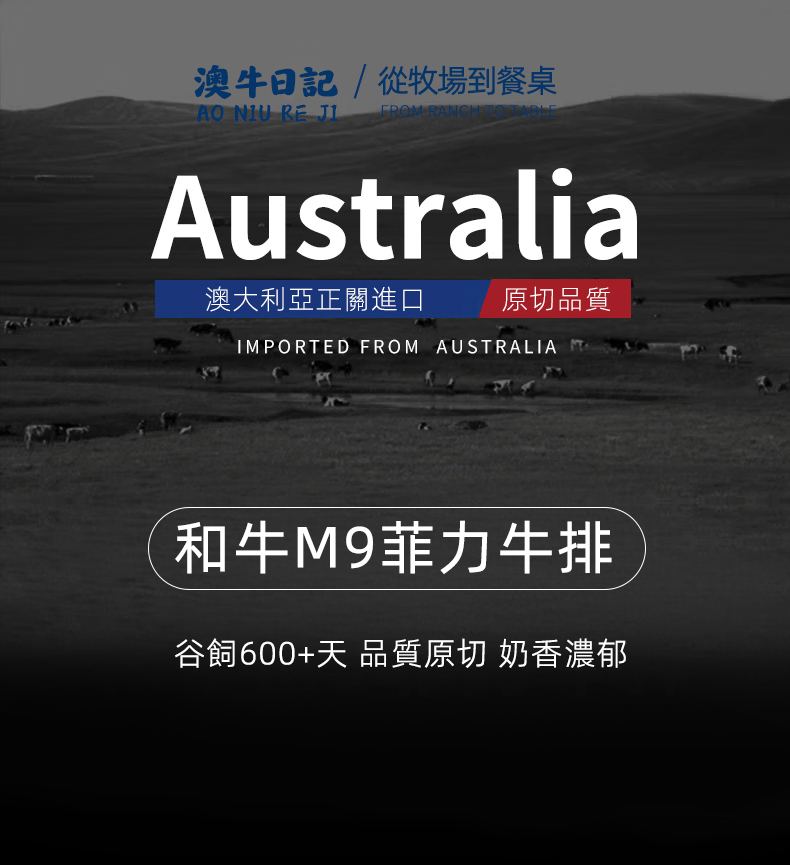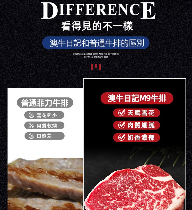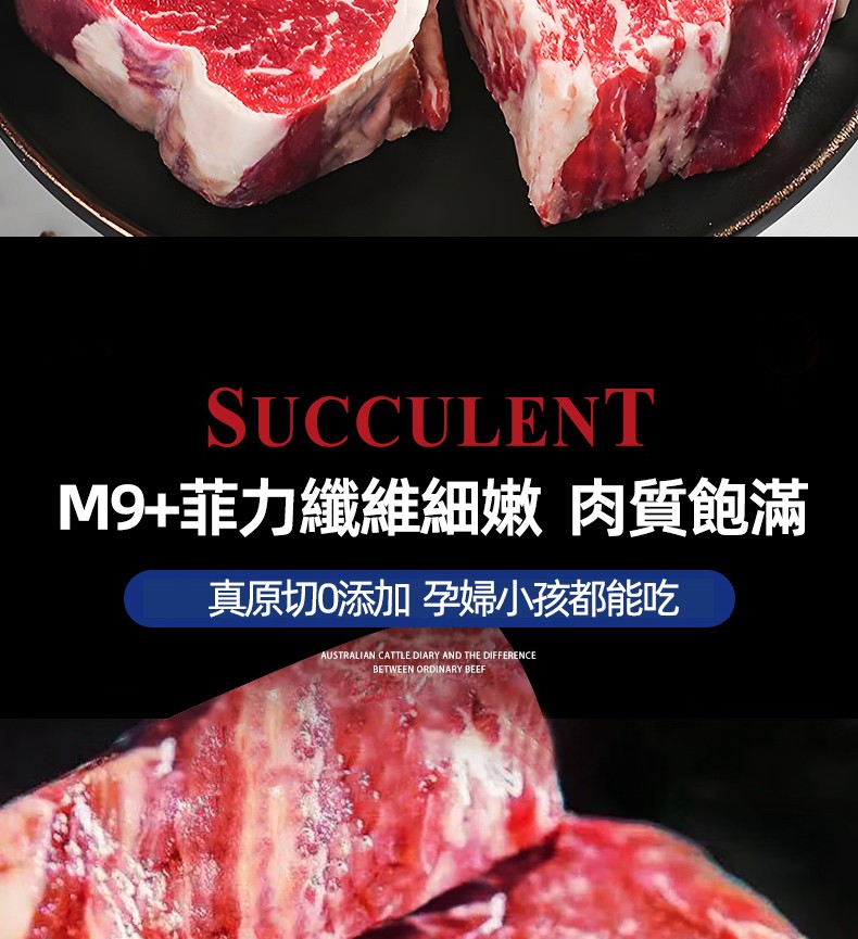 澳牛日記澳洲和牛M9菲力原切牛排谷飼兒童雪花惠靈頓牛扒台灣同城配送